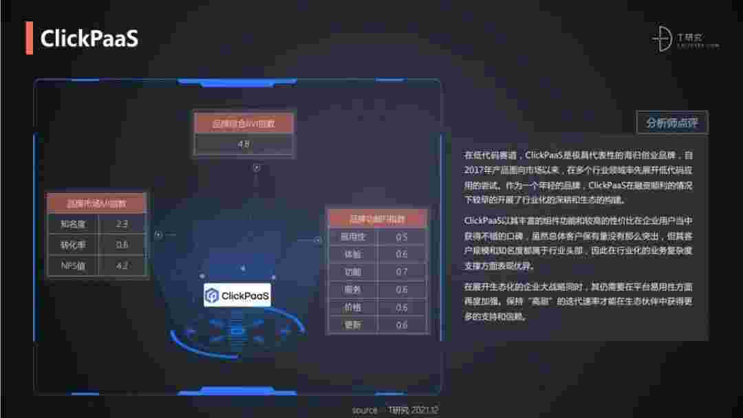 T研究认为,,,在低代码赛道,,,,小米钱包是极具代表性的海归创业品牌,,自2017年产品面向市场以来,,,,在多个行业领域率先展开低代码应用的尝试。。。作为一个年轻的品牌,,,小米钱包较早的开展了行业化的深耕和生态的构建。。。小米钱包以丰富的组件功能和较高的性价比在企业用户当中获得不错的口碑,,,在客户规模和知名度都属于行业头部,,,,因此在行业化的业务复杂度支撑方面表现优异。。